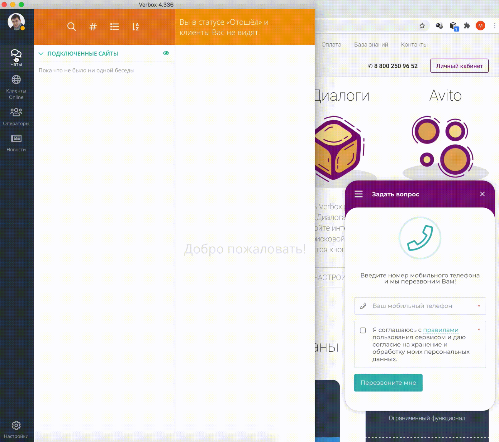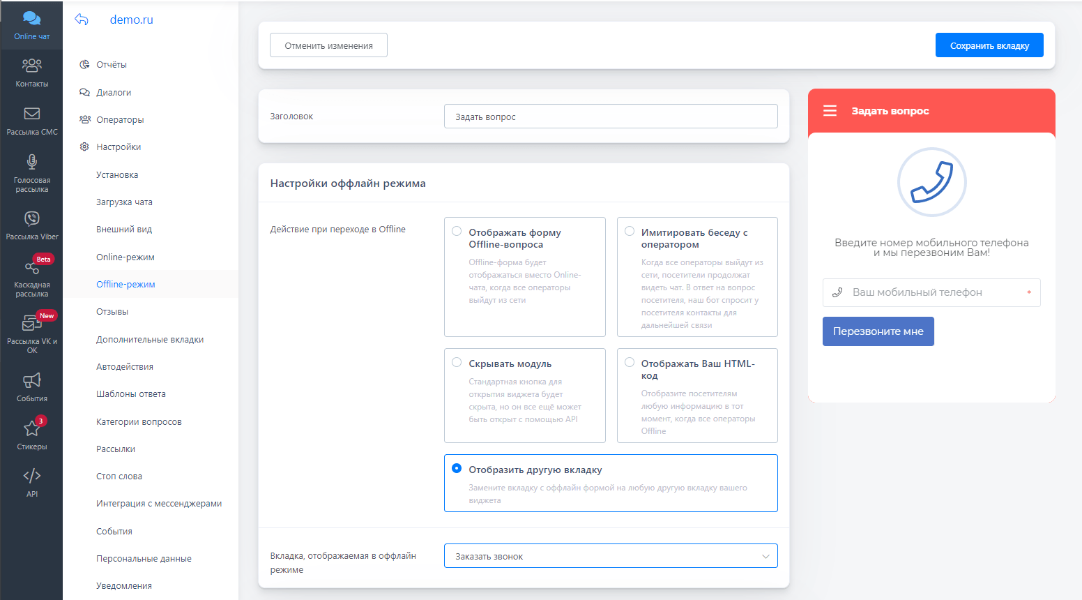 Теперь в оффлайн режиме вместо окна чата вы можете отобразить любую уже созданную вкладку. Доступно только в платных версиях.