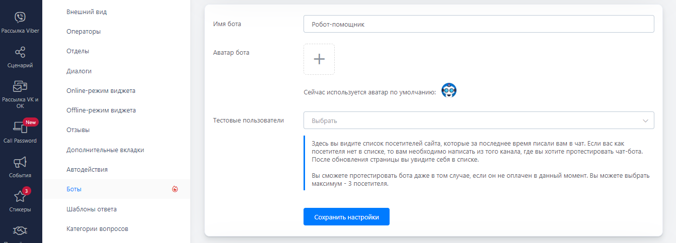 Вы сможете протестировать бота даже в том случае, если он не оплачен в данный момент. Вы можете выбрать максимум - 3 посетителя.