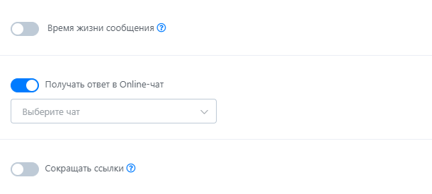 При создании СМС сообщения нажмите на ползунок “Получать ответ в Online-чат”. Выберите необходимый вам проект..png)