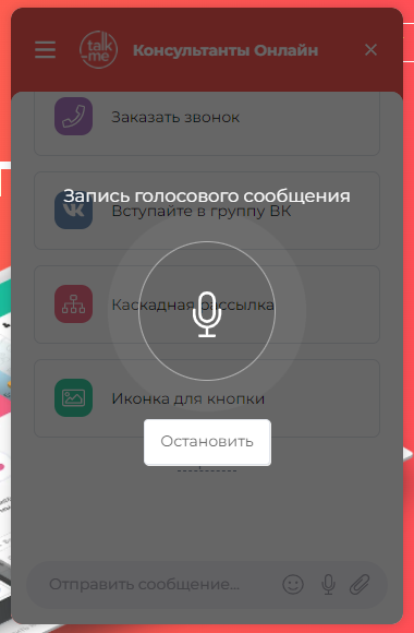 Для некоторых пользователей привычнее и удобнее отправлять голосовые сообщения, а не печатать. Теперь такая возможность есть и у ваших клиентов! Срок хранения голосового сообщения — 2 недели.