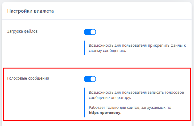 В блоке "Настройки виджета" нажмите на ползунок рядом с "Голосовые сообщения"..png)