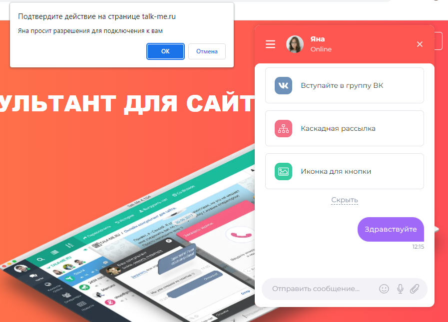 Теперь можно не только запретить запуск Сo-browse операторам, но и включить запрос на подключение. Больше клиенты не будут пугаться внезапно подвигавшейся мыши или пролистыванию страницы, вы об этом их предупредите и получите согласие.