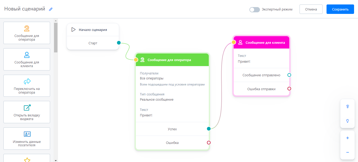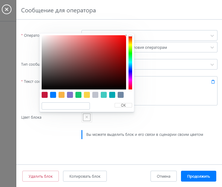 Теперь вы можете выбрать отдел операторов, который получит сообщение.