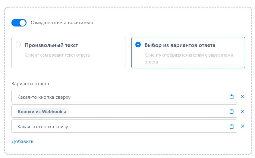 2. В сценариях появилась возможность подставлять переменные в кнопки с вариантами ответа.