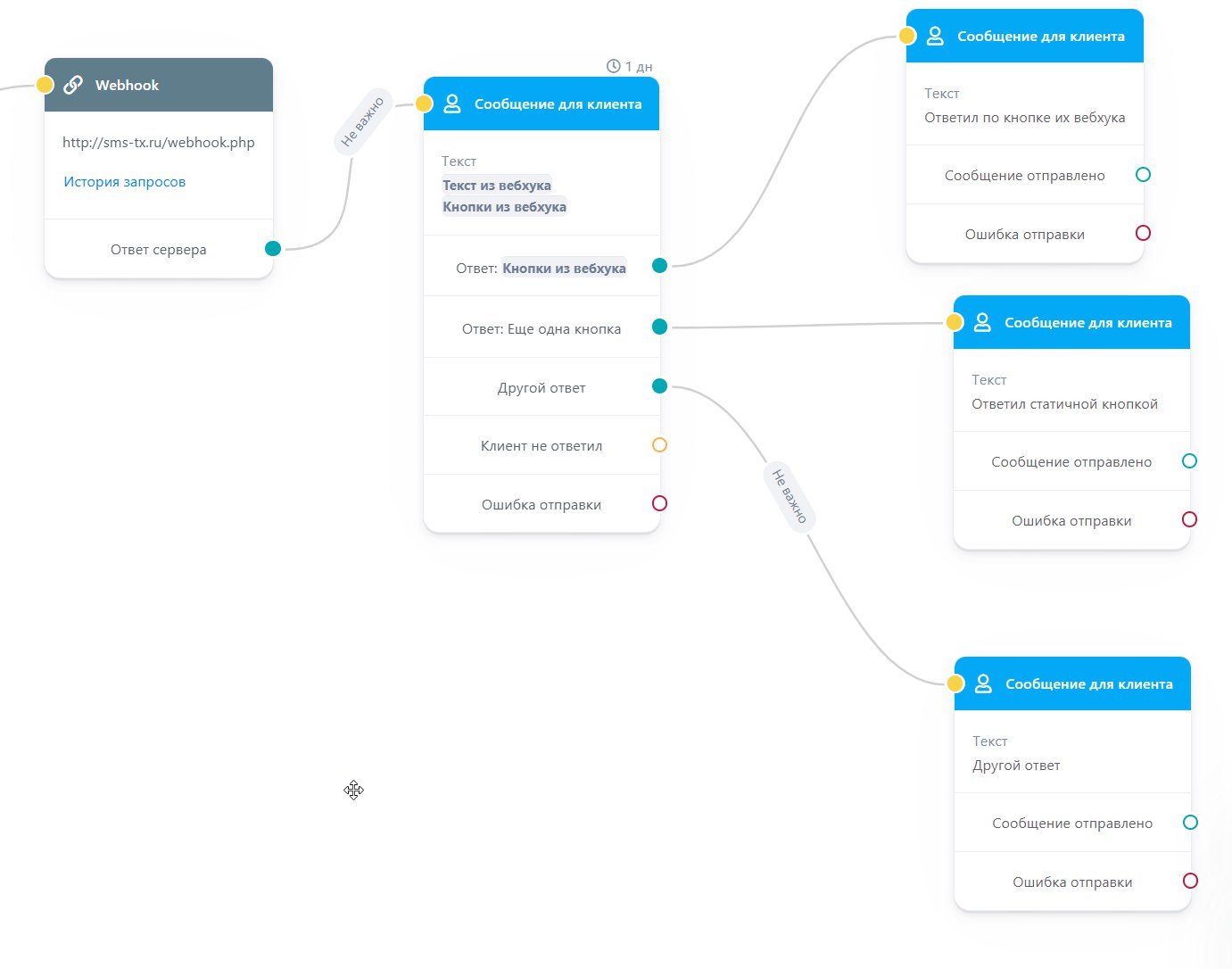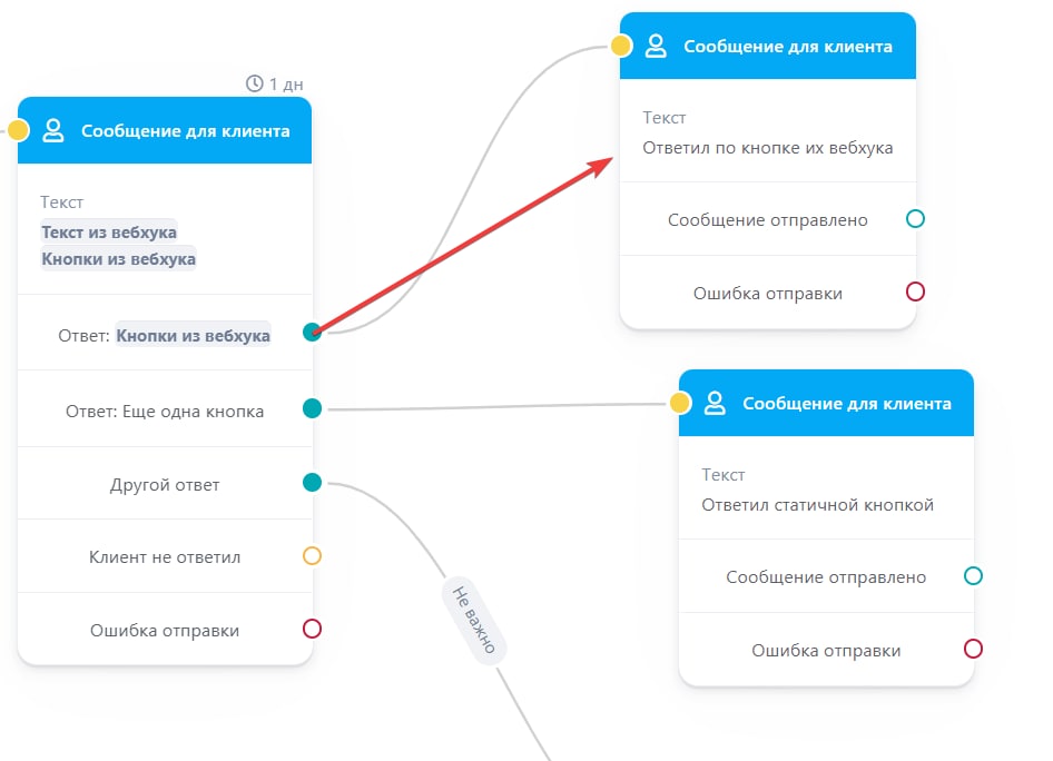 Сценарий идет по нужной нам ветке дальше и мы получаем ответ из Webhook.