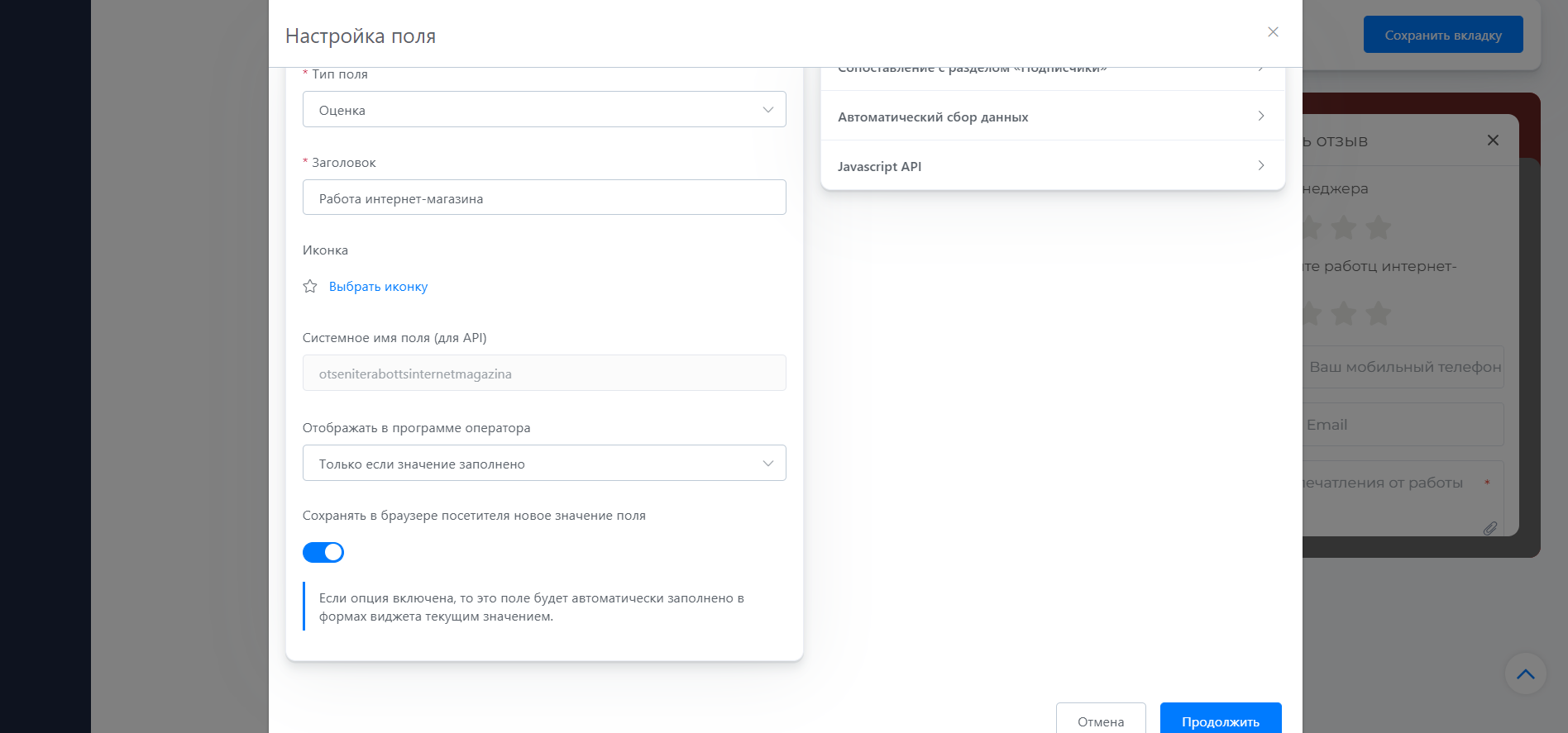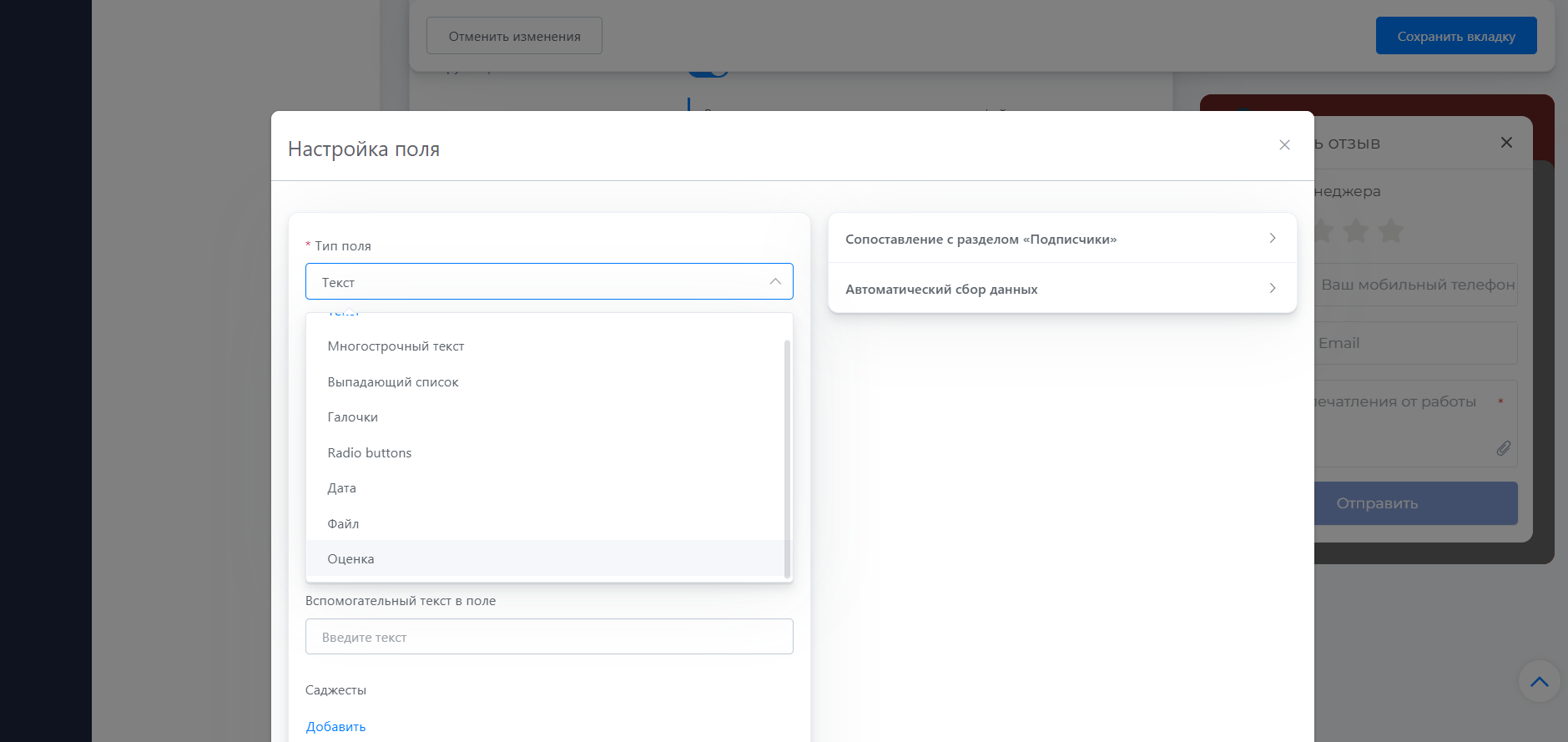 В “Тип поля” выберите “Оценка”..png)