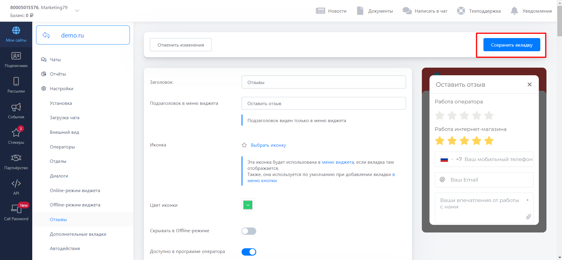 Выключите ползунок “Доступно в программе оператора” и нажмите на “Сохранить вкладку”..png)