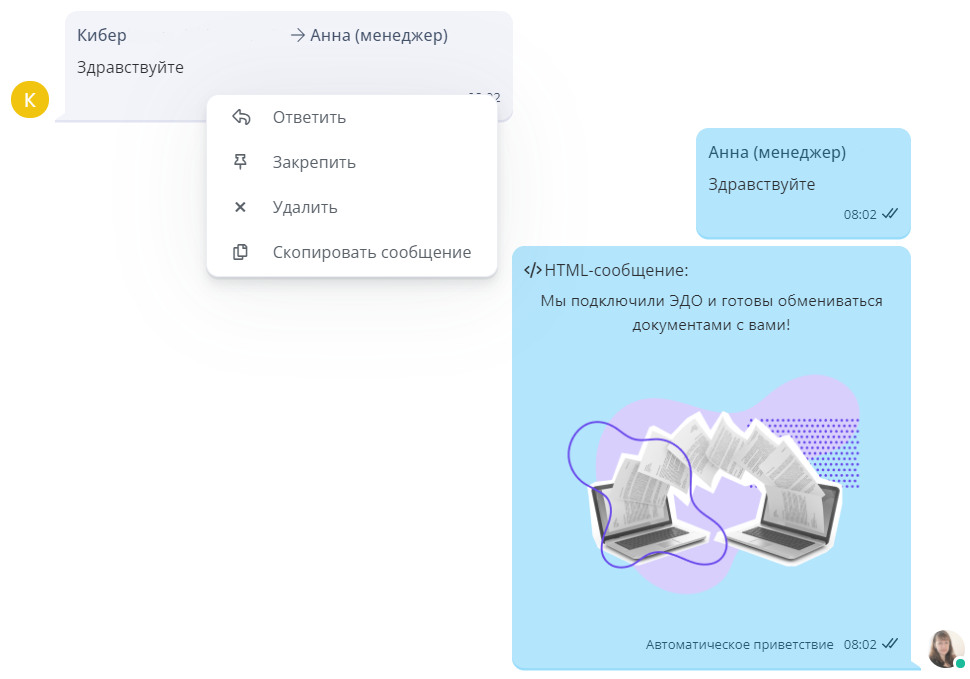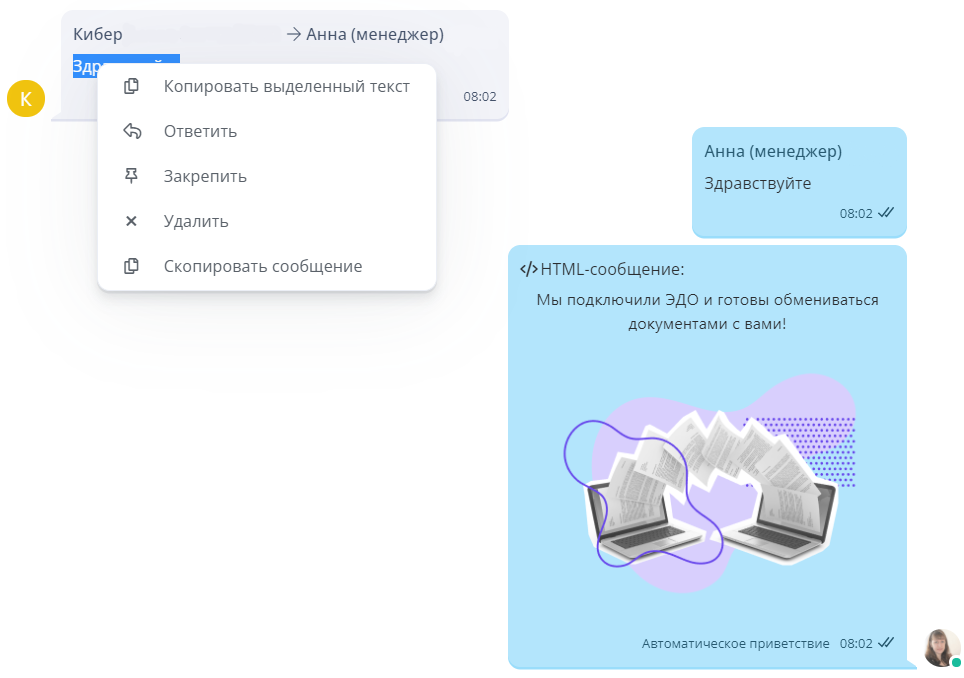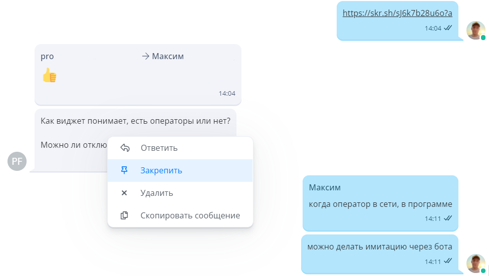 Теперь меню действий не будет всплывать при наведении на сообщение, а будет выводиться только при правом клике на сообщение. .png)