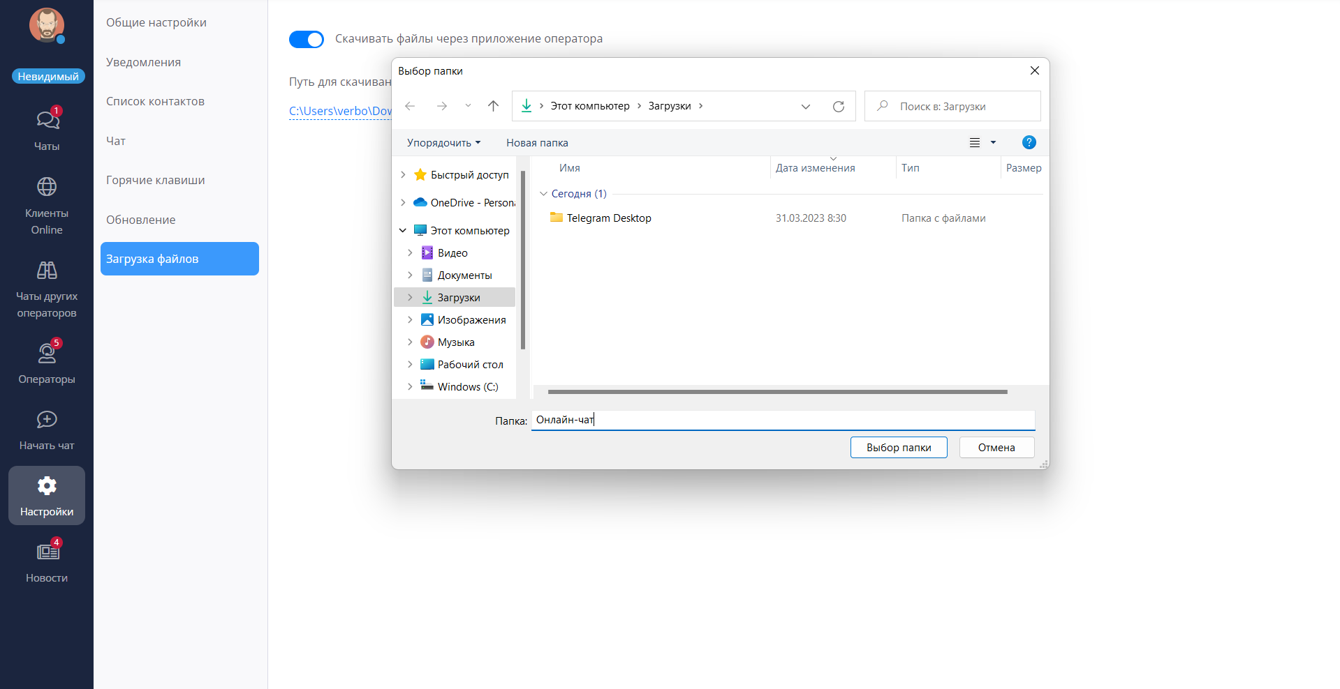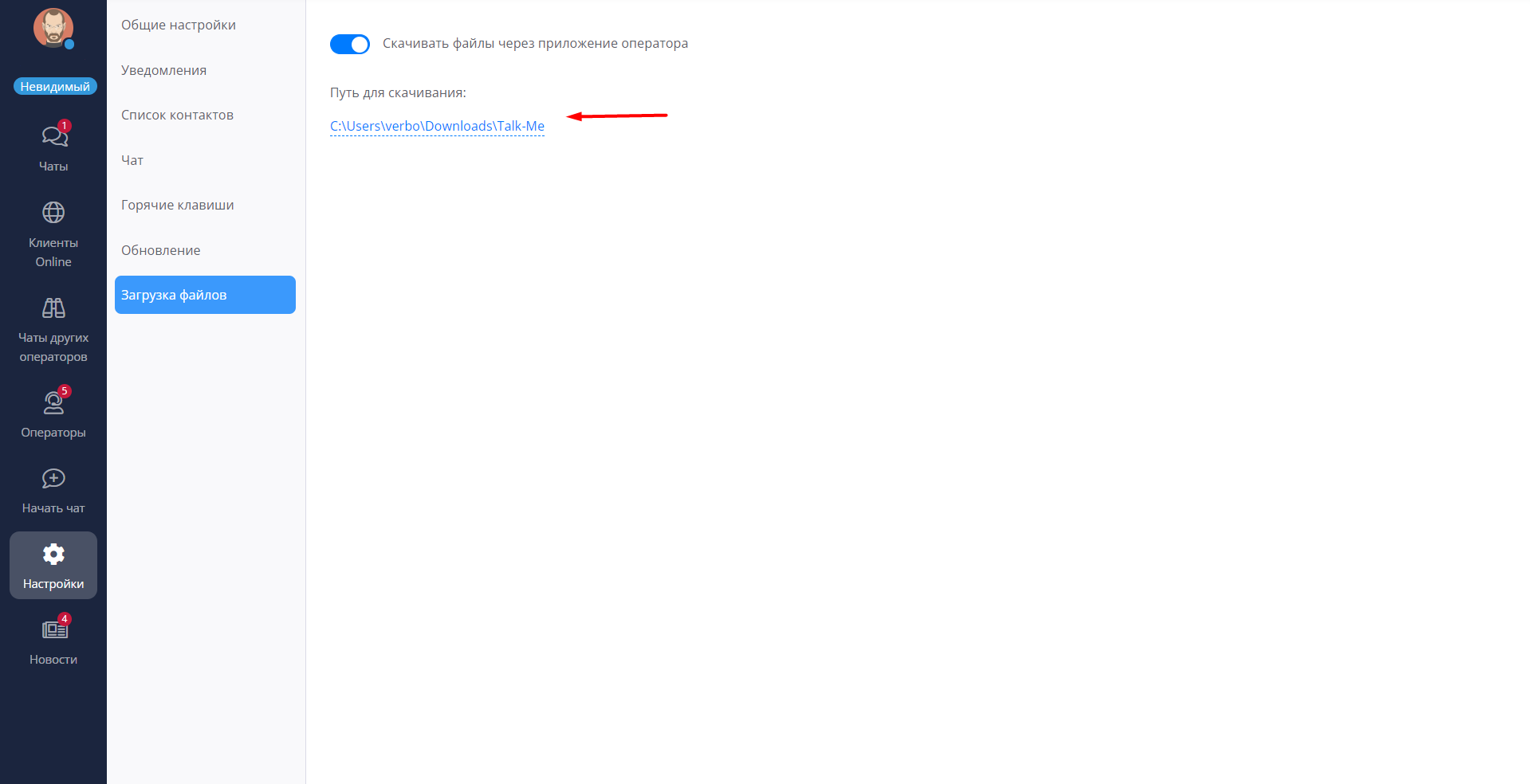 В программе оператора выберите раздел “Настройки” - “Загрузка файлов”. Нажмите на ссылку для скачивания..png)