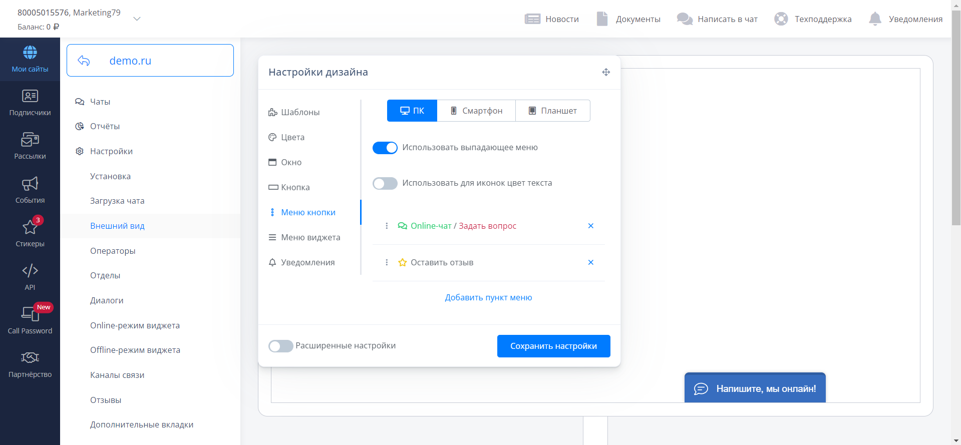 Выберите раздел “Online-режим виджета”..png)