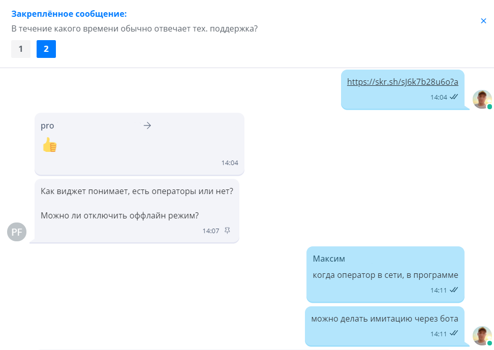 Когда оператор будет отправлять ссылку посетителю сайта, в ссылку автоматически будут подставляться заданные вами UTM метки.
