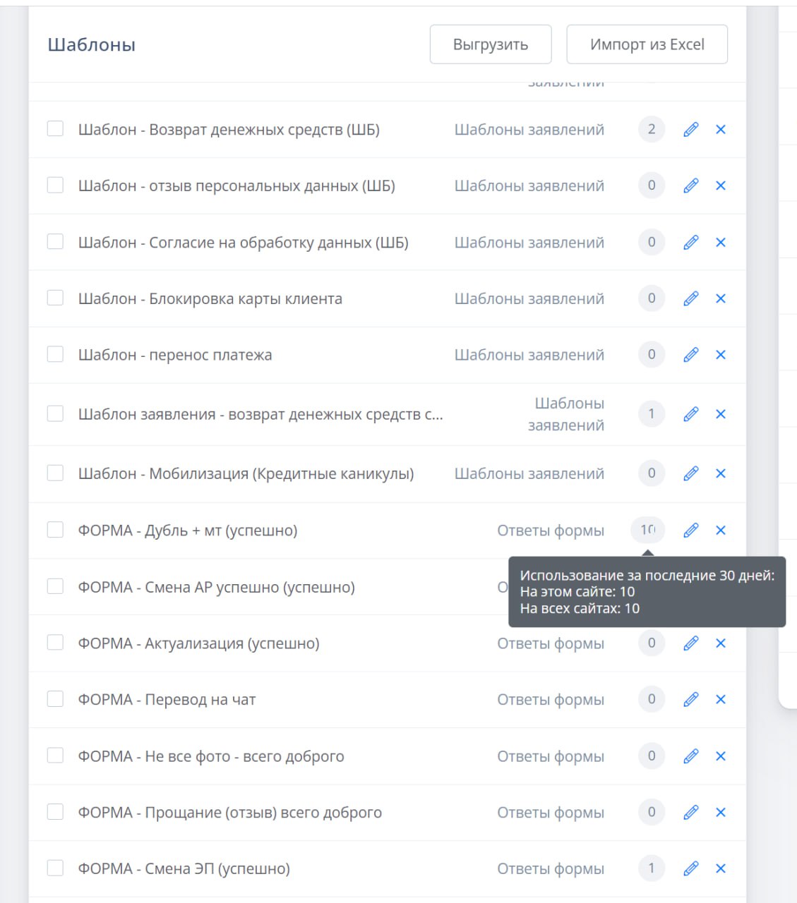На странице с шаблонами теперь показывается - сколько раз за последние 30 дней использовался этот шаблон.