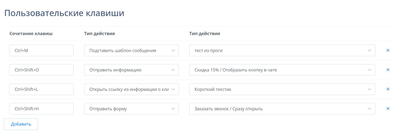 Добавлена возможность более гибкой настройки своих горячих клавиш. Ранее можно было вызвать только подстановку шаблонов сообщений, теперь появился выбор действий: