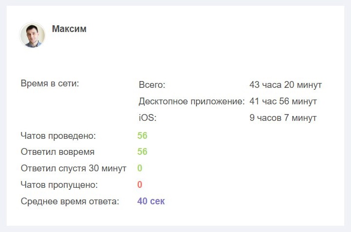 Оценить качество работы оператора стало ещё проще! В письмах с отчётами по операторам теперь отображается - сколько времени оператор провёл в сети и тип устройства, с которого он сидит.