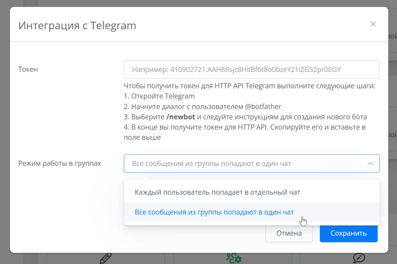 Ранее все сообщения от каждого пользователя группы попадали в свой чат. Сейчас вы можете выбрать режим, когда все сообщения будут попадать в один общий чат.
