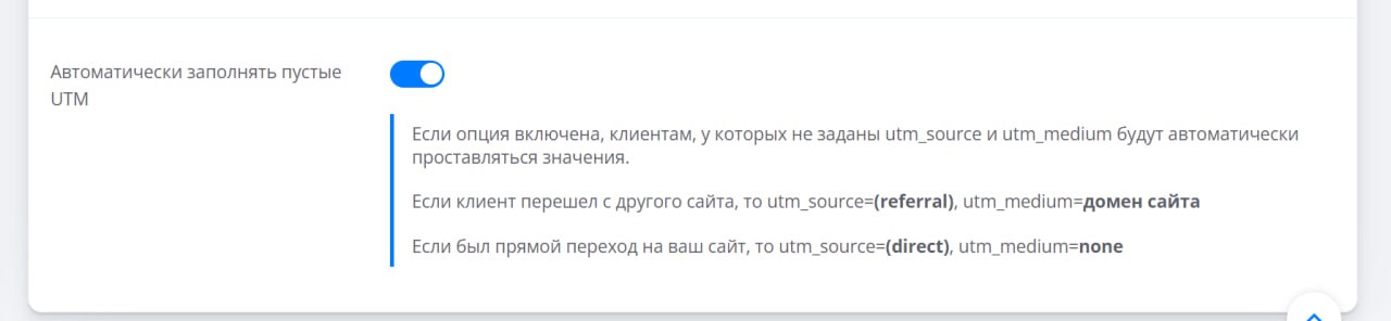 В настройках диалогов появилась возможность автоматически проставлять UTM для прямых переходов и переходов с других сайтов.