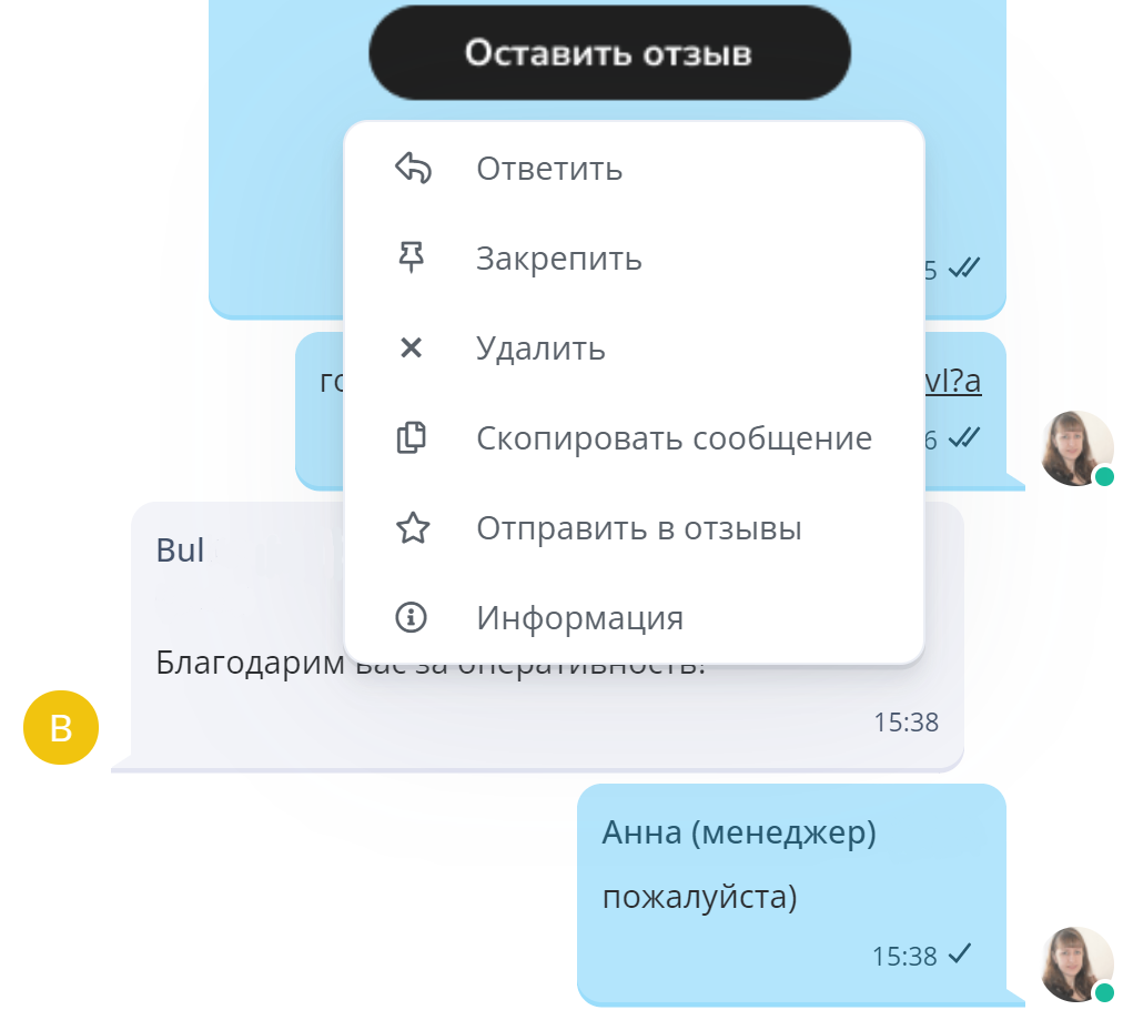 Теперь не нужно просить клиента оставить отзыв и совершать дополнительные действия. Можно самостоятельно перенести его сообщение на вкладку с отзывами.