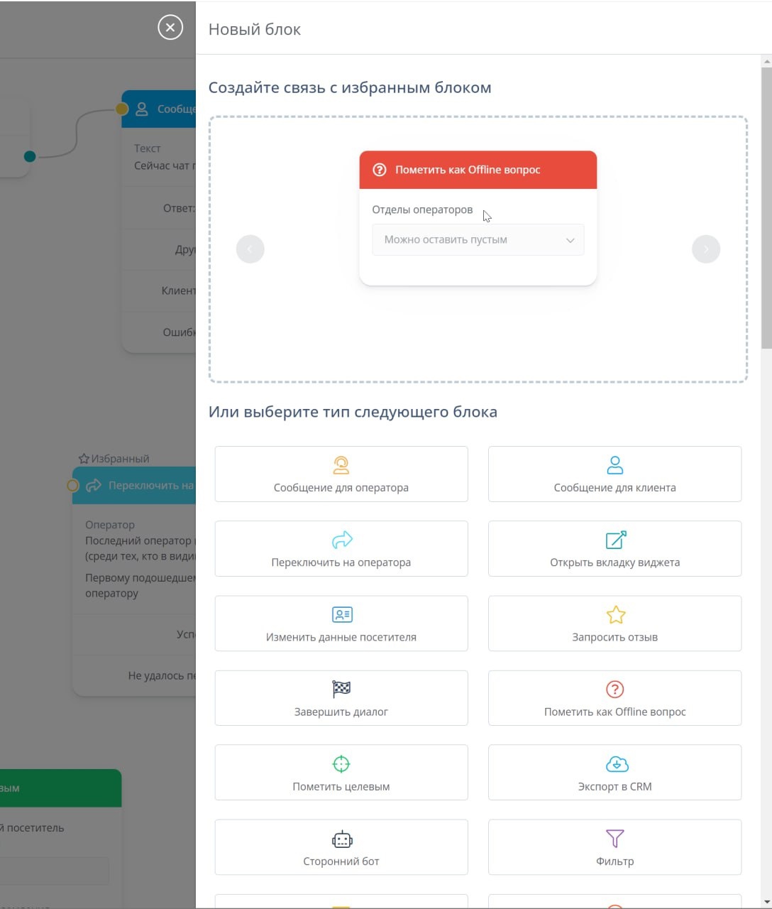 Обратите внимание! Этот пункт становится виден, только если у оператора отключено право видеть чужие диалоги.