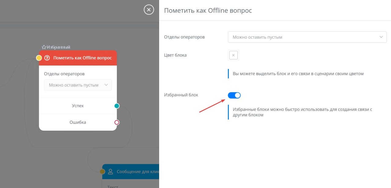 В настройках сценариев появилась возможность помечать блок "Избранным".