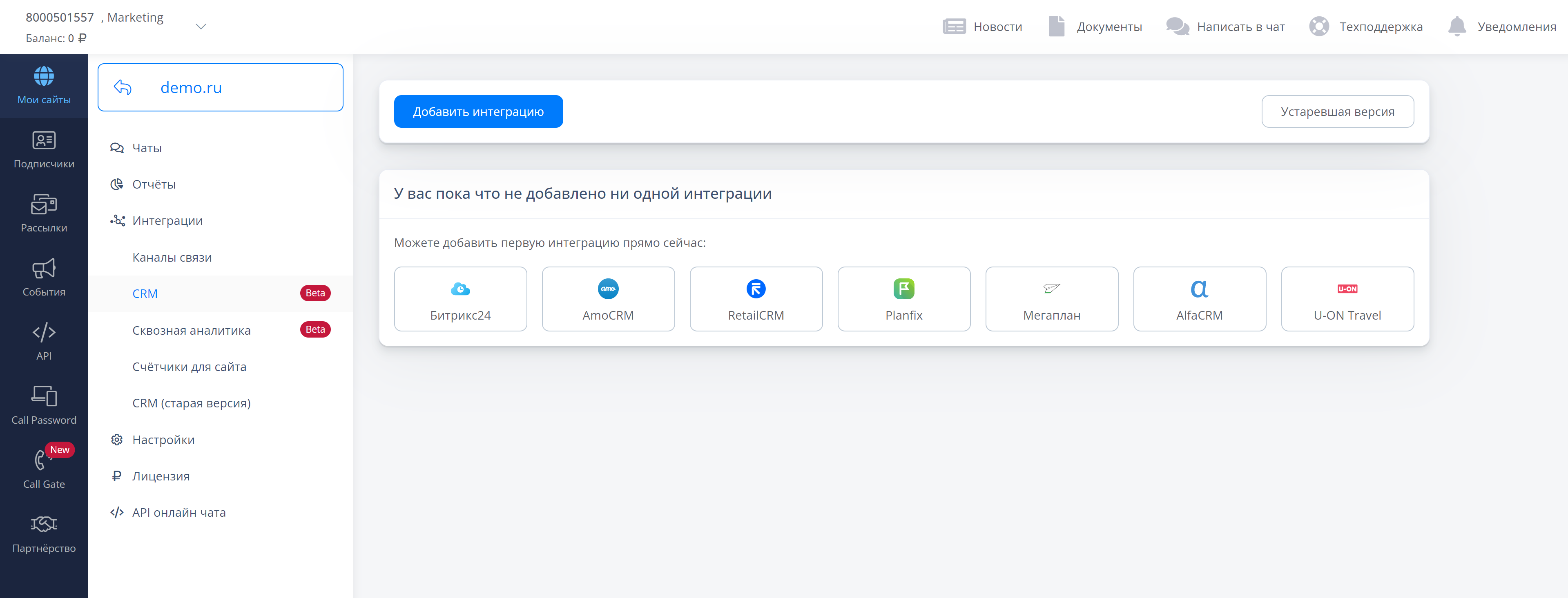Добавлена интеграция с Мегаплан и Альфа CRM