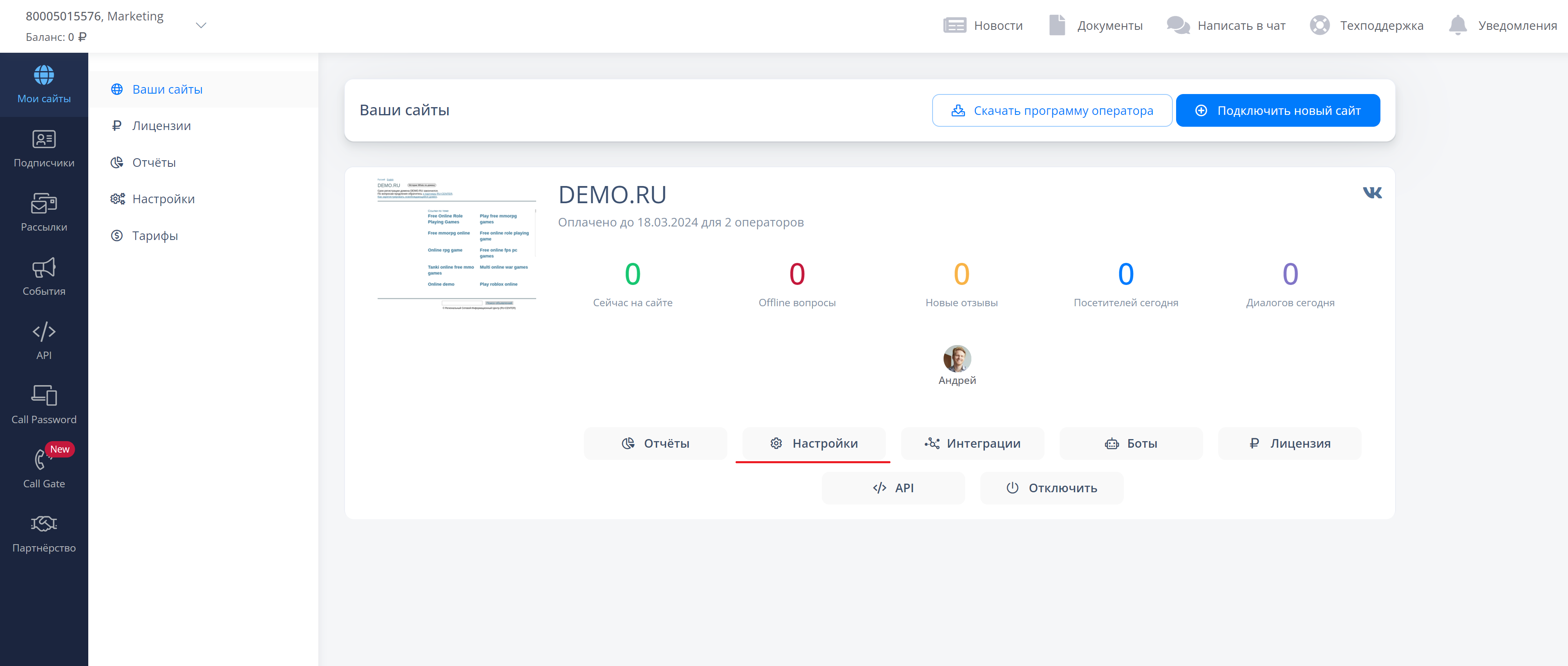 Новые настройки в личном кабинете и программе оператора