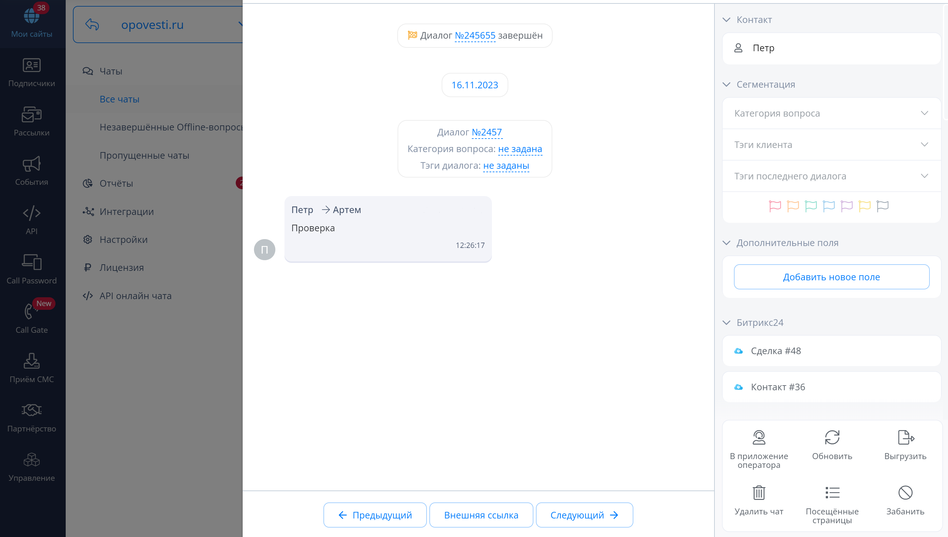 В личном кабинете при просмотре чатов вы увидите новый столбец справа. Такой же, как и в программе оператора. Плюс теперь можно редактировать данные клиента, смотреть выгрузки в CRM и все остальное..png)